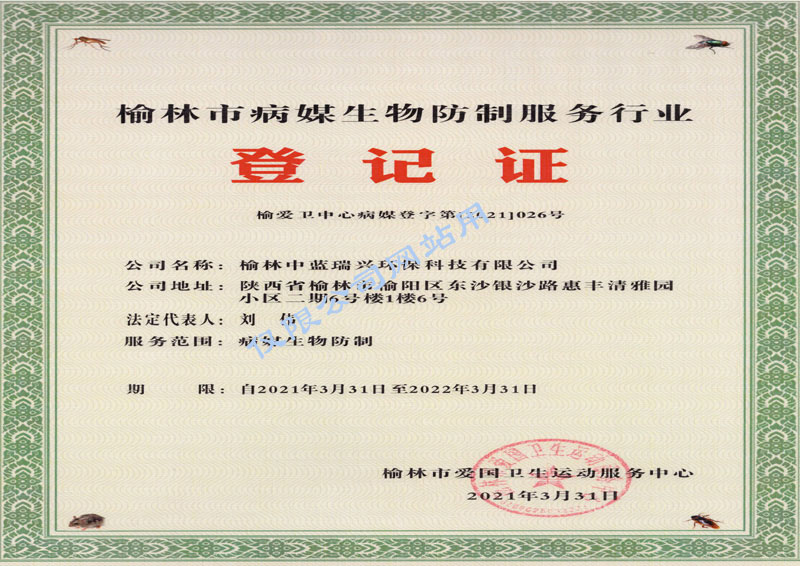 版权所有: 榆林中蓝瑞兴环保科技有限公司 主要从事酒店、餐饮、工厂、写字楼、学校、食品厂和医院等榆林单位灭老鼠,榆林灭蟑螂,榆林灭白蚁,榆林灭苍蝇,榆林灭蚊虫,榆林灭爬虫,榆林消毒、榆林灭菌服务为一体的新型环保类科技公司。 欢迎来电咨询!